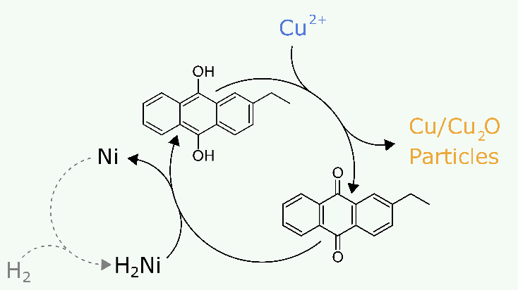 Recycling of solvent and reducing agent in the synthesis of copper-based particles using 2-ethylanthraquinone